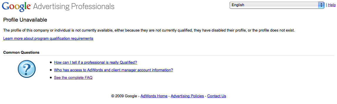 Tags: Google Advertising Professionals Profile, Google Profile Unavailable