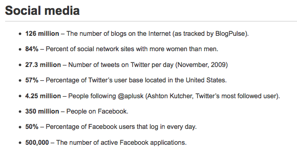 This entry was posted on January 23, 2010 at 11:10 pm and is filed under Social Media Stats. You can follow any responses to this entry through the RSS 2.0 feed. You can leave a response, or trackback from your own site.
