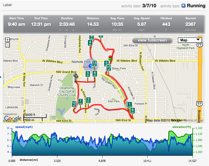 I ran my longest run so far in 2010 today- 14.53 miles.