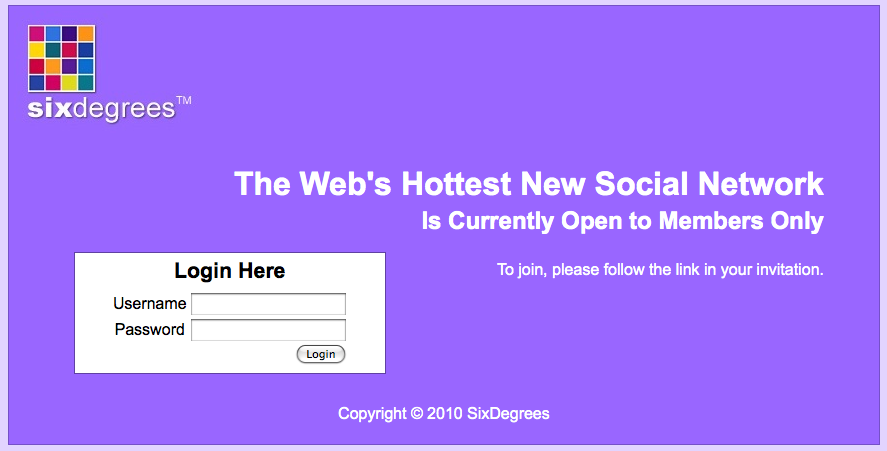 This entry was posted on June 3, 2010 at 12:24 pm and is filed under SixDegrees.com. You can follow any responses to this entry through the RSS 2.0 feed. You can leave a response, or trackback from your own site.
