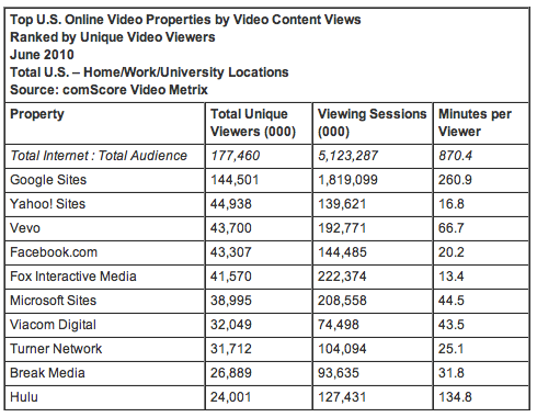 This entry was posted on July 21, 2010 at 9:30 pm and is filed under Top U.S. Online Video Properties. You can follow any responses to this entry through the RSS 2.0 feed.