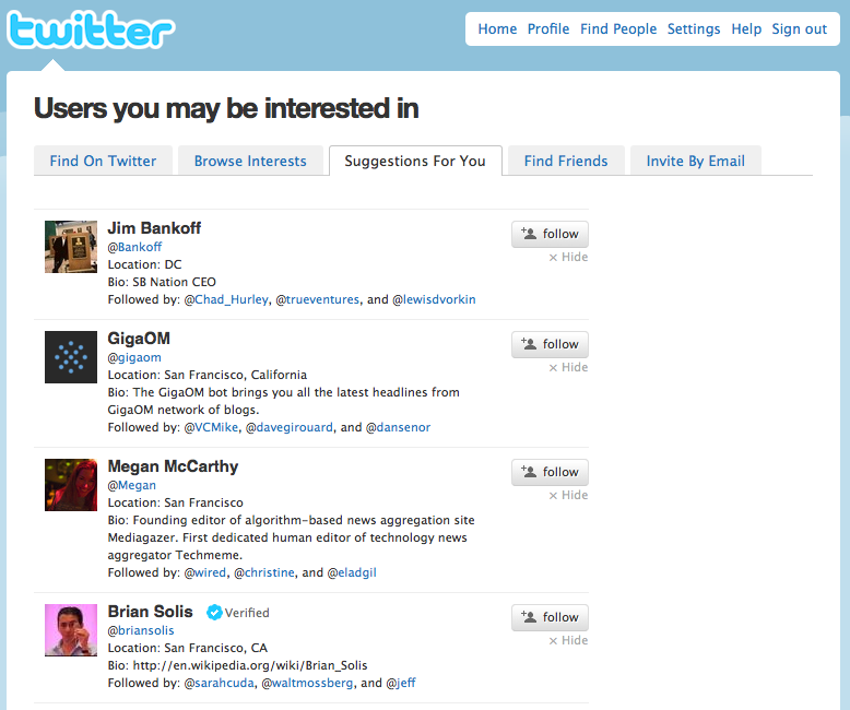 I have been out of the office for a few day and noticed a new feature in Twitter – Who To Follow.