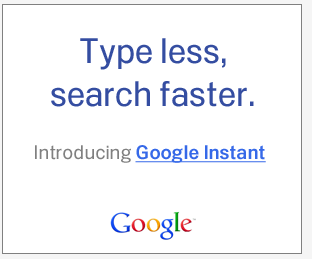 Shouldn’t this display ad for Google Instant read – Type less, find faster?