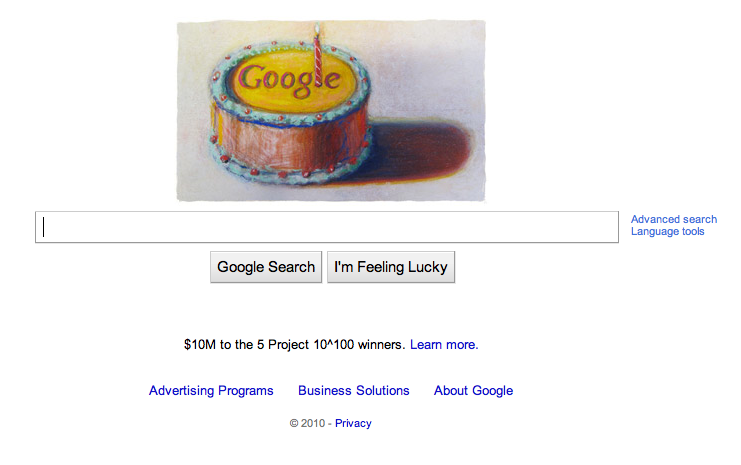 Pretty simple Google 12th Birthday Doodle – a cake with a candle.