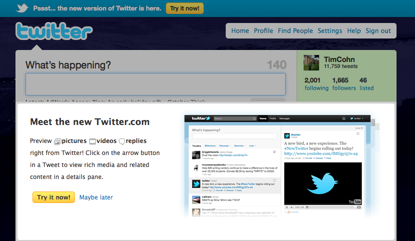 I have grown so accustomed to the original Twitter interface, it will be interesting to see if and when I can adjust to the new Twitter interface.