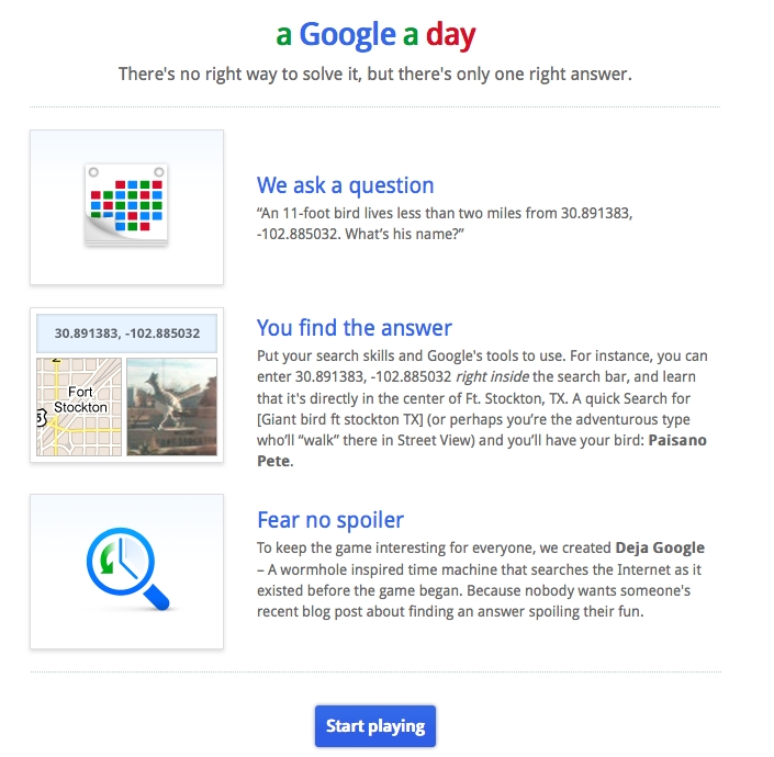 To avoid accidentally finding the answers, players are told to use the Google search on the trivia game’s site. The answers are revealed the next day in the paper and on A Google A Day.