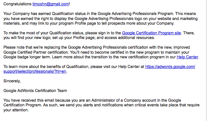 Because my company appears to meet the new qualifications for becoming a Google Certified Partner, I plan to go through the certification process – again.