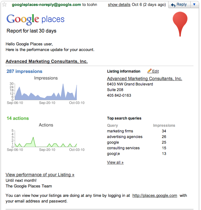 While researching a list of local business listings in Google Places, I discovered the following “business description” and expanded web site view or lack thereof.