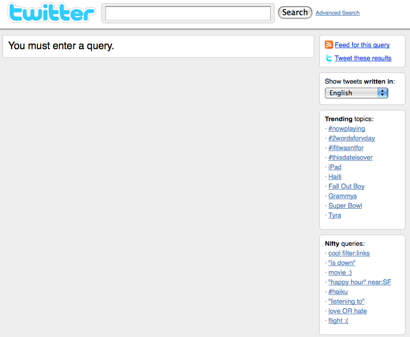 You’d think to qualify as a nifty query in Twitter search results – there would actually need to be some Twitter results available.